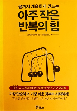 '아주 작은 반복의 힘'이라는 책입니다. 이 책의 저자는 결심이나 목표를 가진 것이 잘못된 것이 아니라고 말합니다. 다만 그 목표와 결심을 실행하는 방법이 틀렸다고 말하며 아주 작게 시작하고 그것을 반복하는 방법으로 스몰 스텝 전략을 이야기합니다.