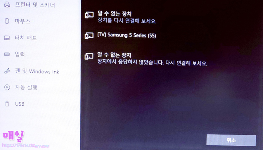 제가 받은 키보드가 반품되었던 제품이라고 오해했던 것에 힘을 실어준 것이 블루투스 연결을 시도했지만 장치를 찾을 수 없다는 메시지가 떴었기 때문입니다 .